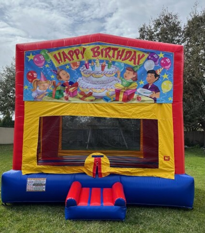 Introducing our FUN HOUSE JUMPER - Happy Birthday Theme! This exciting inflatable bounce house is the perfect addition to any birthday celebration, bringing endless fun and laughter to your party.