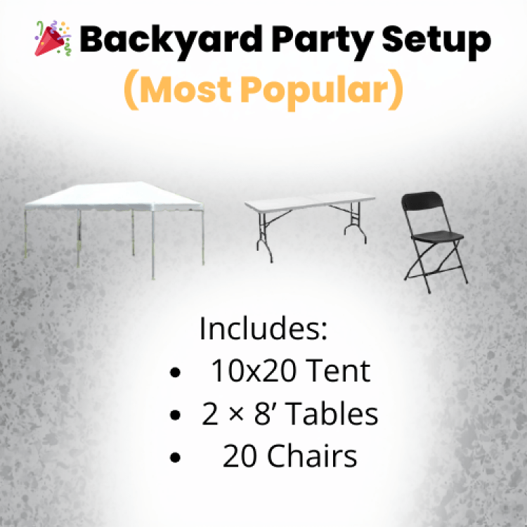 For 48 Hours$295 8' Plastic Banquet Table - Seats 8-10Backyard Party Setup (Most Popular):8' Plastic Banquet Table - Seats 8-101Dropdown23182619__31475291100 Free Delivery